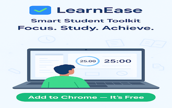 LearnEase, öğrencilerin odaklanmasına, üretkenliğini artırmasına ve organizasyonunu sağlamasına yardımcı olan akıllı bir çalışma aracıdır. Chrome tarayıcısı için ücretsiz bir eklenti olarak sunulan LearnEase, kelime sayıcı, okuma zamanlayıcı, çalışma zamanlayıcı, dikkat dağıtıcı siteleri engelleme ve günlük tutma gibi çeşitli özellikler sunar. Bu araçlar, öğrencilerin ders çalışma süreçlerini daha verimli hale getirmeyi amaçlar.